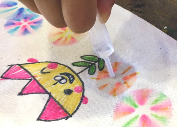 こどもの村では、夏休みに「ハナマンのお花畑」と題したワークショップを開催します。みんなで大きな布に魔法のお水でお花を咲かせて、ハナマンが住むきれいなお花畑をつくります。
