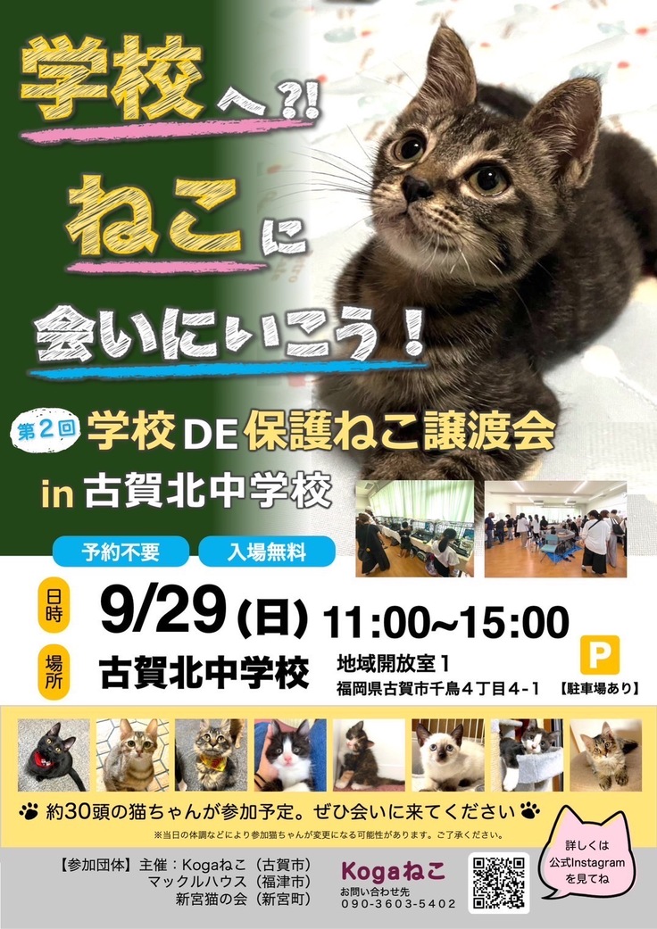 保護猫たちの里親探しも一生懸命頑張っていて、毎月、譲渡会も開催し、みんにゃの赤い糸を探しています。