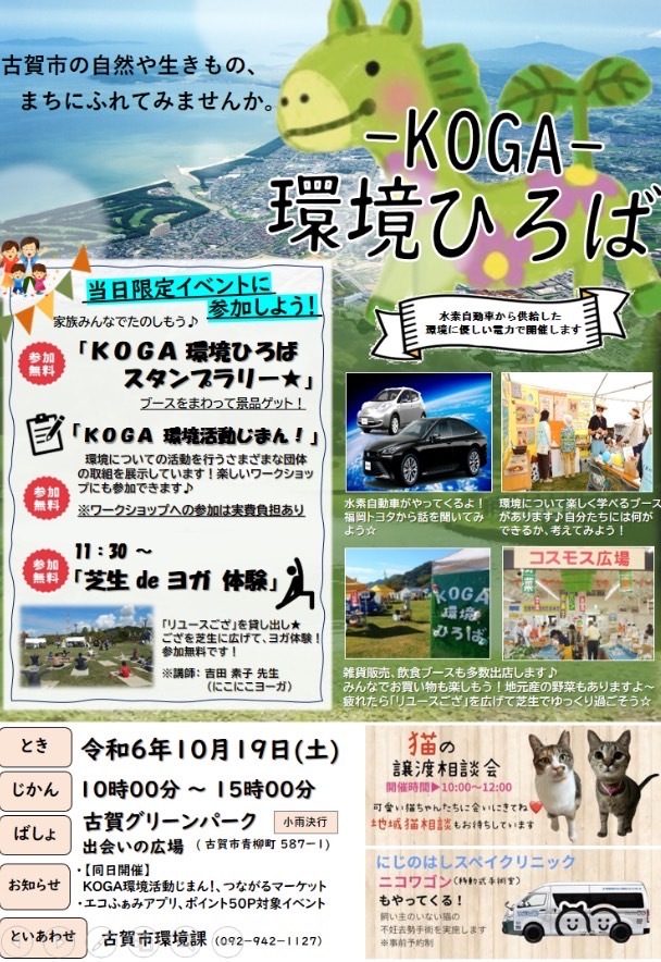 第2回 にじのはしスペイクリニック出張手術はは10/19(土)に古賀グリンパークで行われるイベント『KOGA環境ひろば』です。