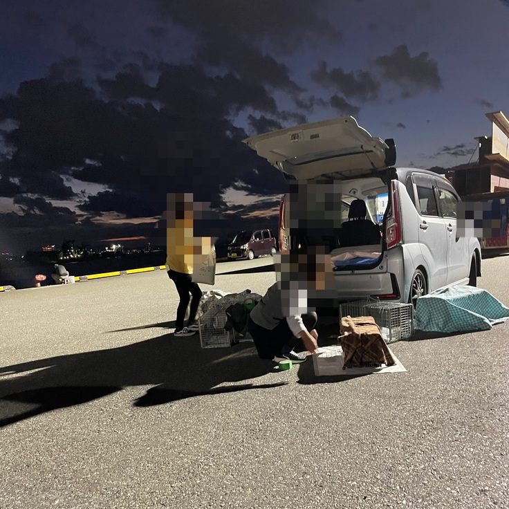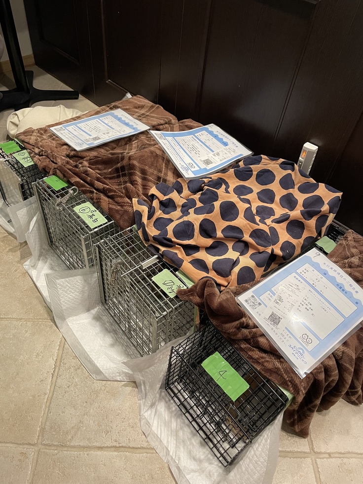 ボランティアさんたちで夜の現場に捕獲に行きました。