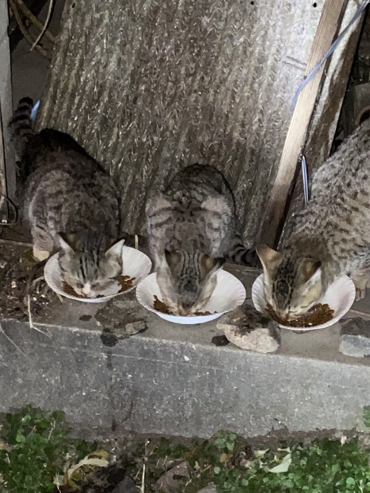 猫たちは給餌を開始され今ではゴミを漁る事が無くなりました。