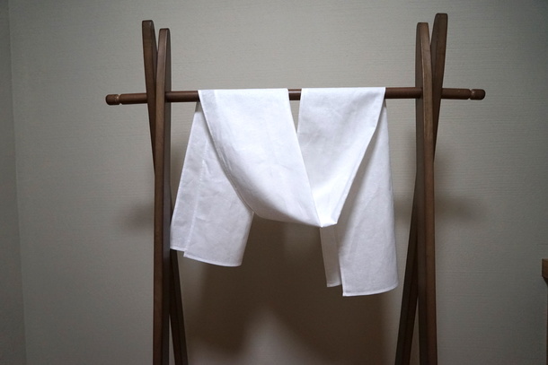 ご寄附いただいたかたには、クラウドファンディングの先行販売として、ふく楽ワイシャツに加えてスカーフとチュニックをお返しさせていただきます。スカーフとチュニックは麻やウールの生地が苦手な私でも着心地はよく程よいハリ感もあり