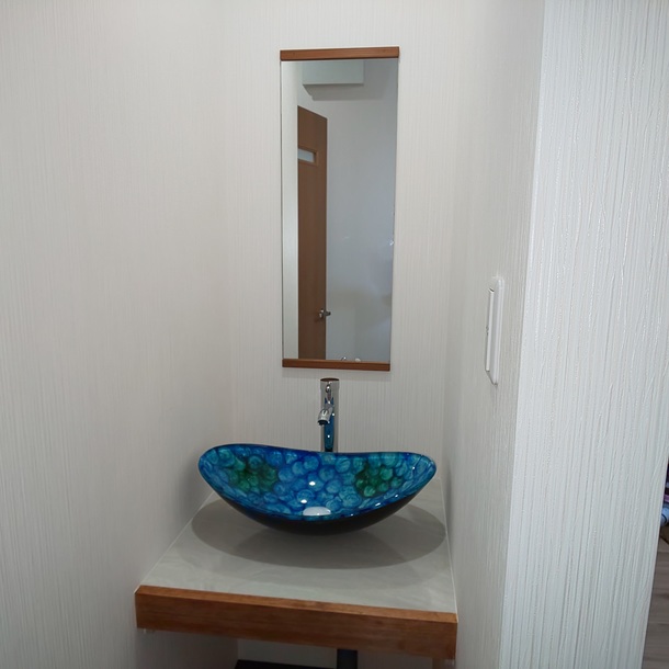 ※私のわがままでネットで買った韓国製の洗面ボールを何とかつけてくれました。安いのだけれど蛇口が合わなかったりで、業者さんは大変だったようです。