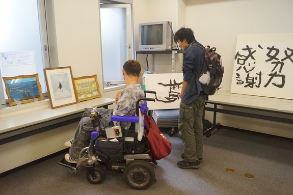 体験ブースでは、車椅子を押しながら、3Fから地下まで来たり。