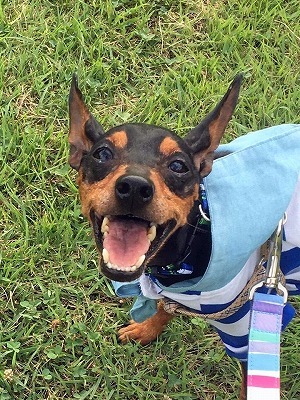 息子さんが持ち込んできた、ミニチュアピンシャーの「ぴーちゃん」。