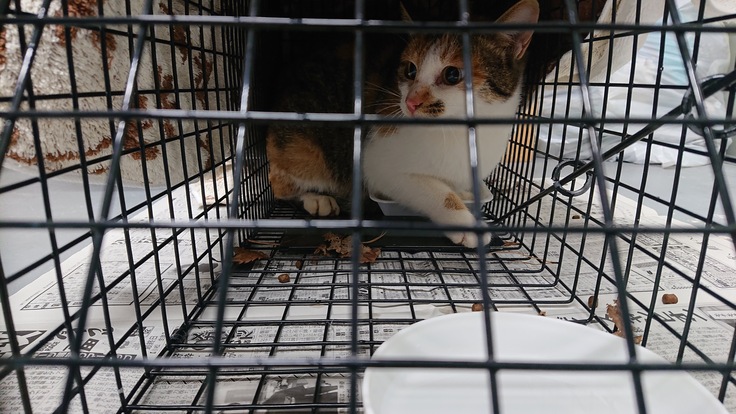 三毛猫のヒメさんはかつらお動物見守り隊さんに託しました。