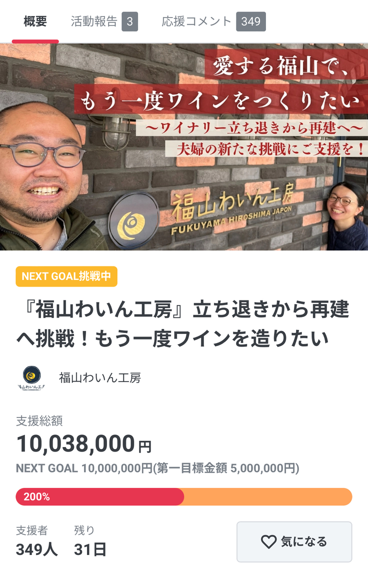 重ねてのご依頼になりますが、プロジェクトの最終目標達成に向けて、追加のご支援や拡散など、可能な範囲でお力添えをいただけますと幸いです。
