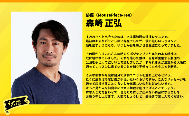 【応援メッセージ vol.1】俳優(MousePiece-ree)森崎 正弘 さん
