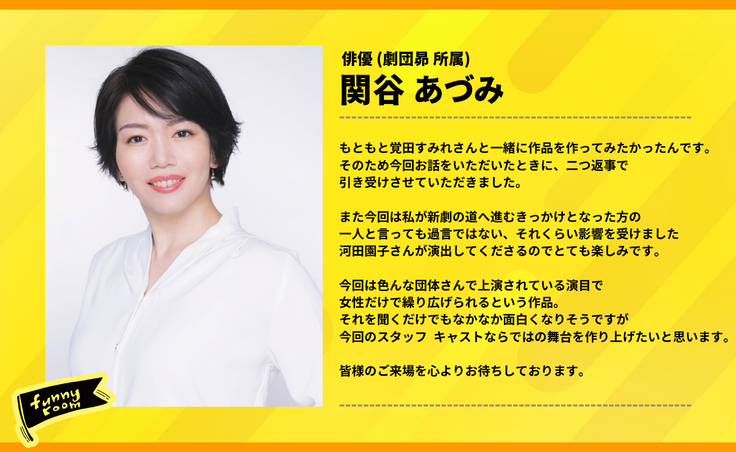【応援メッセージ vol.11】俳優 (劇団昴 所属) 関谷 あづみ さん
