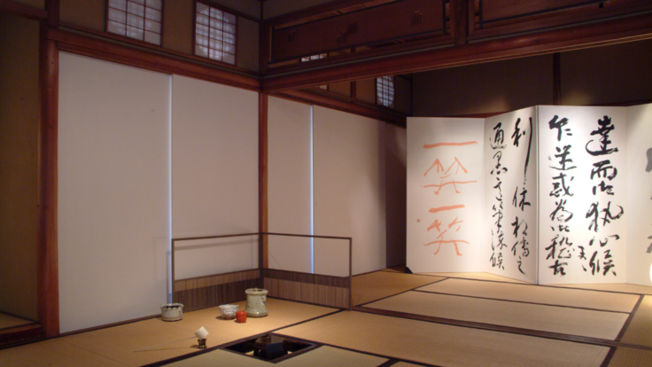 この展覧会は、内田繁先生が「茶の湯」をキーワードに爲三郎記念館を演出しました。
