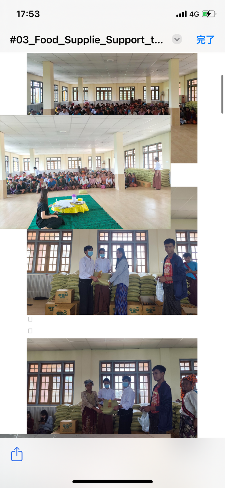 当会が4月に実施しましたミャンマー地震被災者支援のためのクラウドファンディグ「ミャンマーで大震災、故郷の人々に支援を届けたい」プロジェクトですが、先日ご報告させていただきました通り5つのパートナー団体とともに実施しております。そのうちPa-O National Development Organization (PNDO)経由での活動報告が現地より届きましたので、ご報告をさせていただきます。※緊急性があったため一部を立替で(前倒しで)支援させていただきした。