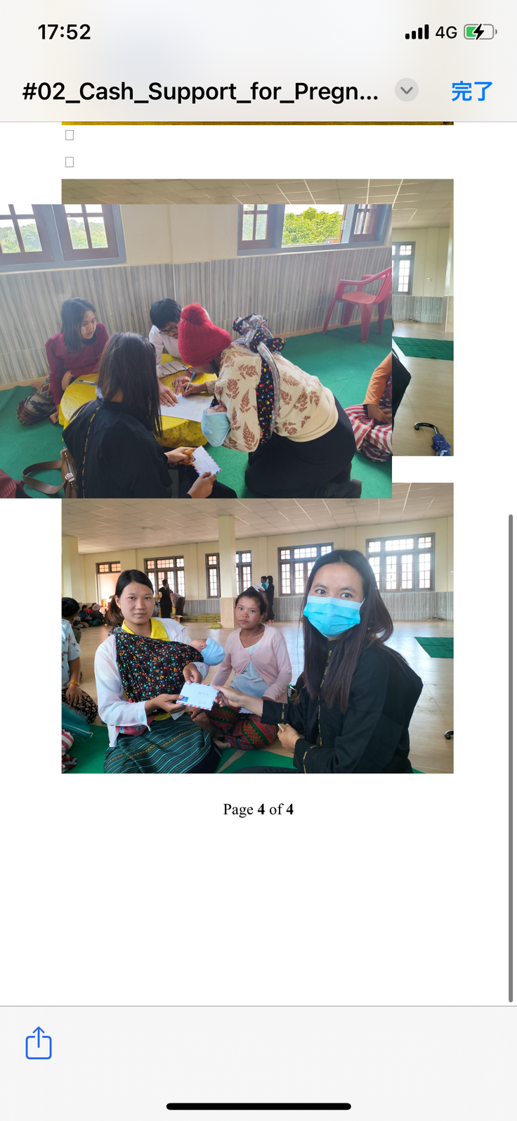 ・妊婦や出産直後のお母さん12名に対し現金寄付