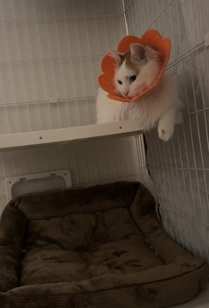 でも調べてみると、普通はもっと短く切るケースも多いようで、先生が白フサ猫の未来を考えながら最善の選択をしてくださったのだと改めて感謝の気持ちが湧いてきました。