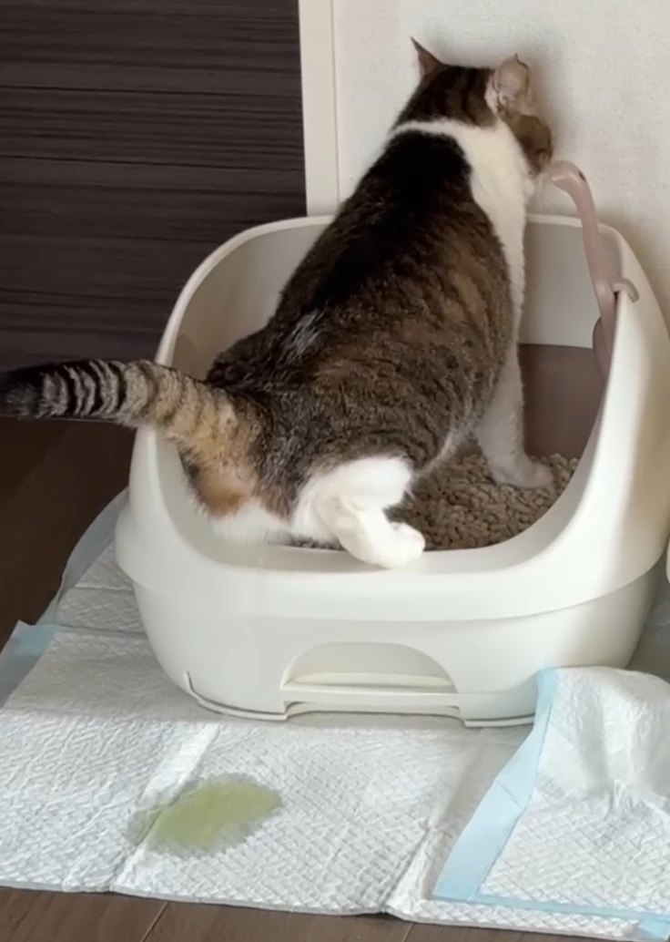 最初は枠の外におしっこが少し漏れていて、「え?!誰ー?!もうー!!」と冗談交じりに笑ってしまっていたのですが、それが何度か続きました。今までそんなこと一度もなかったです。