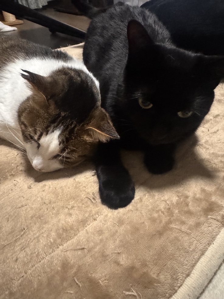 きっちゃんはミッケとずっと一緒にいたのですが、なでしこがきっちゃんのことが大好きで、ミッケが少し距離を置いて見守っています♪(みっけはきっちゃんの母です)