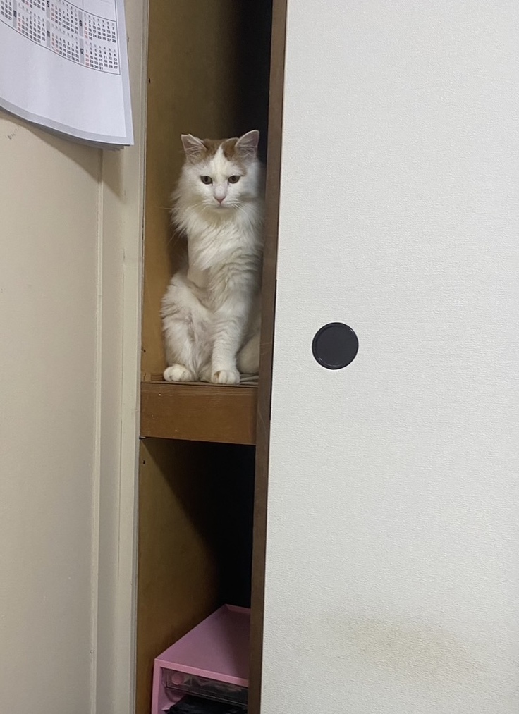レン君は最近、タンスの中がお気に入りのようで、静かにくつろいでいます。