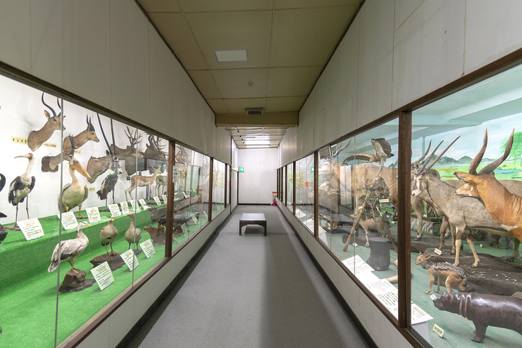 当時、西日本では数少ない自然科学の博物館で、現在は動物の実物剥製約800体を始め、化石・鉱石類、貝類、昆虫類、人体標本等約20,000点を常設展示しています。