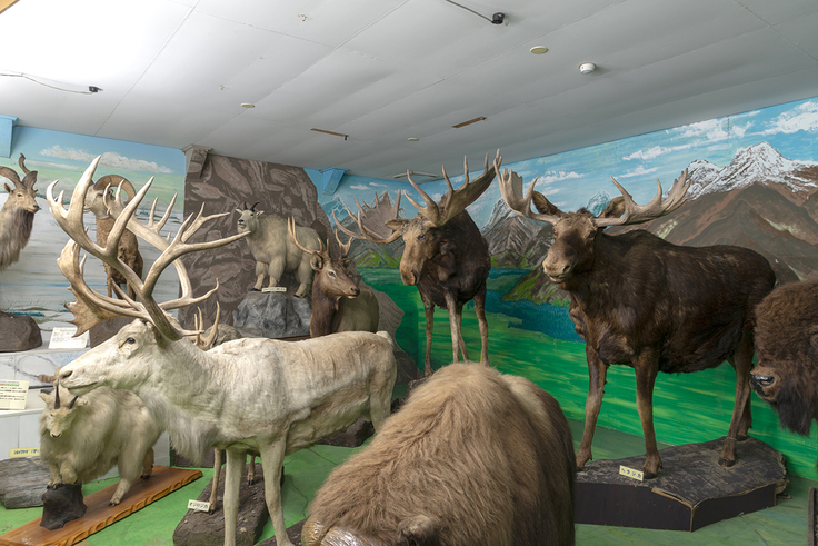 古い木造校舎を利用した館内には、世界各地に生息する野生動物の剥製を中心に、化石、鉱石、昆虫、果ては人体生理標本まで、多種多様な標本が所狭しと並び、その資料内容は全国有数の規模を誇ります。