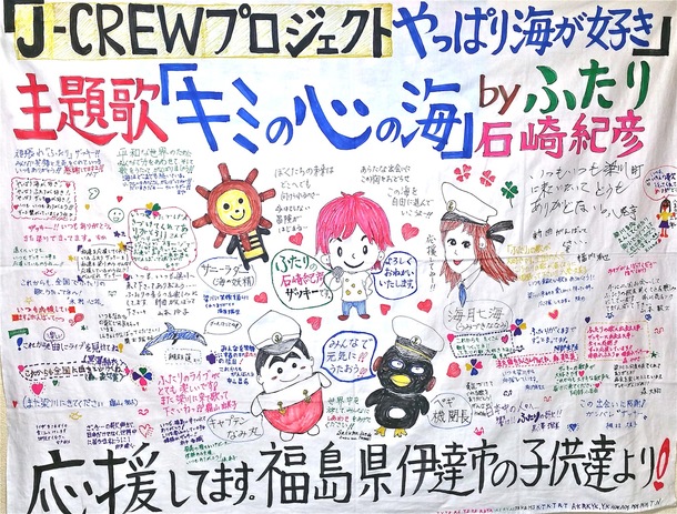 福島の子供達が送ってくれた「応援フラッグ」の写真は下にあります。