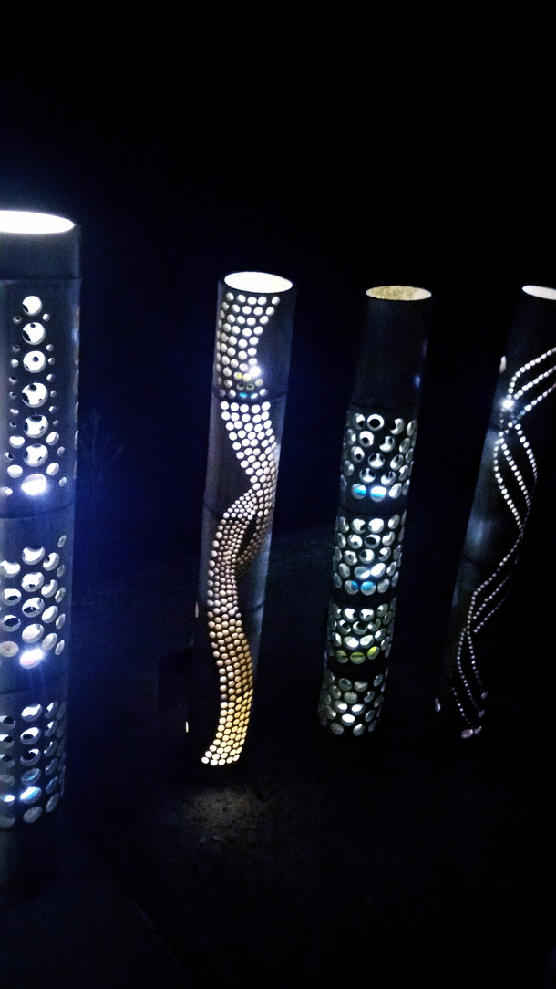 昨日、見せていただいた藤井さん作の竹灯籠の写真です。美しい光を放っていて、世界に発信したくなる、「日本のアート!」と呼べるものです。