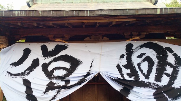 先日、ふたりが行なわせていただいた益城町の支援ライブの際に神社に飾られていた「復興」という書です。