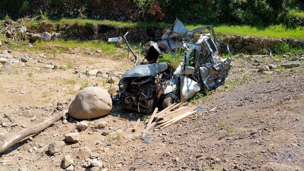そして、その横には、つぶれてしまった車が今も残されていました。