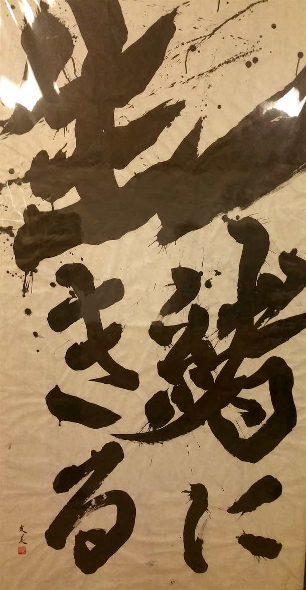 そして、九州豪雨災害の後、今度は熊本県益城町の方々が大分県日田市を支援され、先ほどの益城町の書道家石井友美さんが今度は日田市を訪れ、支援され、書を残されていました。