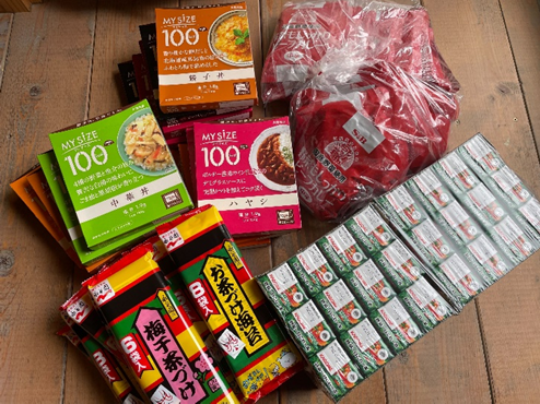 事務局ではレトルト食品など多くのご寄付を受け取り、あらためてご支援に感謝申し上げます。