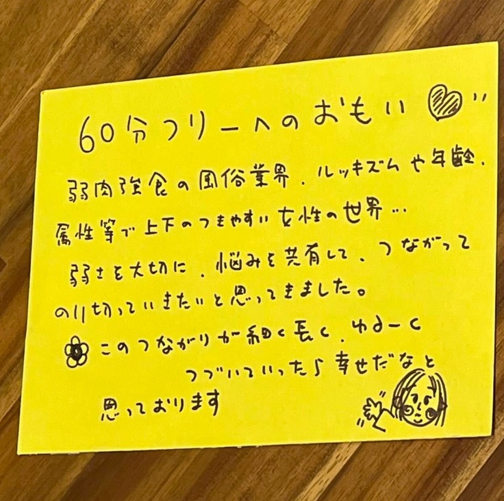 2022年7月より、風テラスは、風俗で働く女の子たちのサポートグループ『女の子たちの60分フリー』の活動をオンラインで行ってきました。