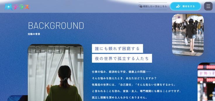 私たち風テラスが取り組む、風俗で働く女性の背景紹介ページなど、ぜひ、覗いてみていただけるとうれしいです。