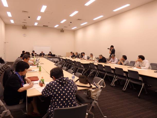研究会には、専門家、ジャーナリストを含む市民35人が参加し、予定時間を超えて議論が行われました。《右の写真は第1回研究会のもよう》