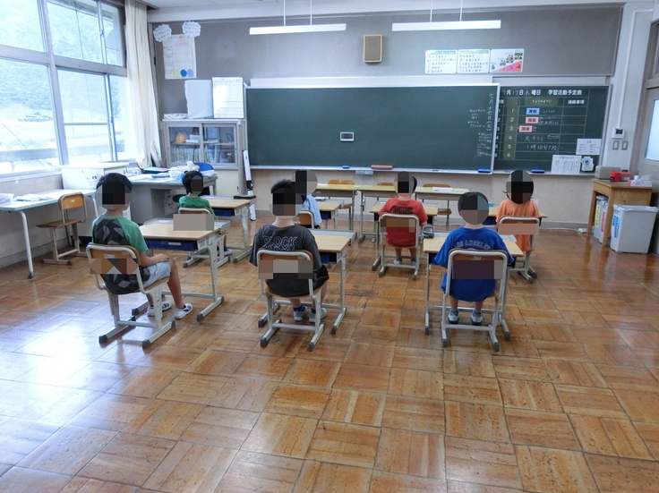 このように1クラスに二学年合同で学んでいます。移住者、地元民混合しています。