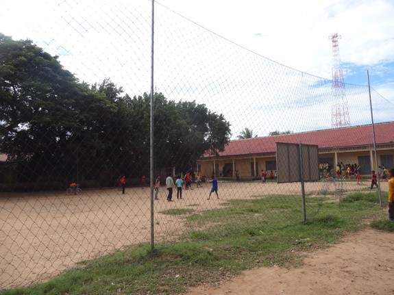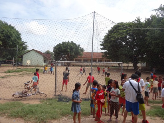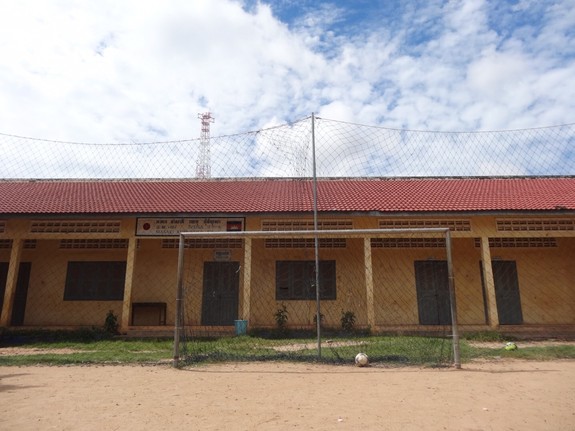 <ネットが設営されたトンレバット小学校のグラウンドの様子>