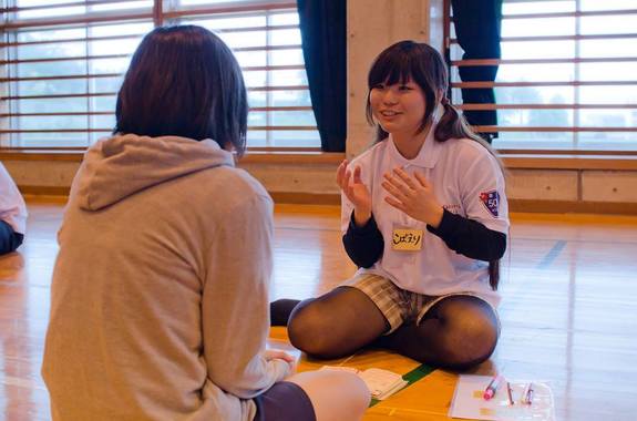 座談会では大学生と中学生が1対1や大学生1対中学生2といったスタイルが主です。普段なかなか関わることのない大学生と中学生が同じ目線で語り合いをしています。