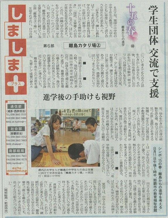 (平成24年沖縄タイムス連載記事「15の春」下)