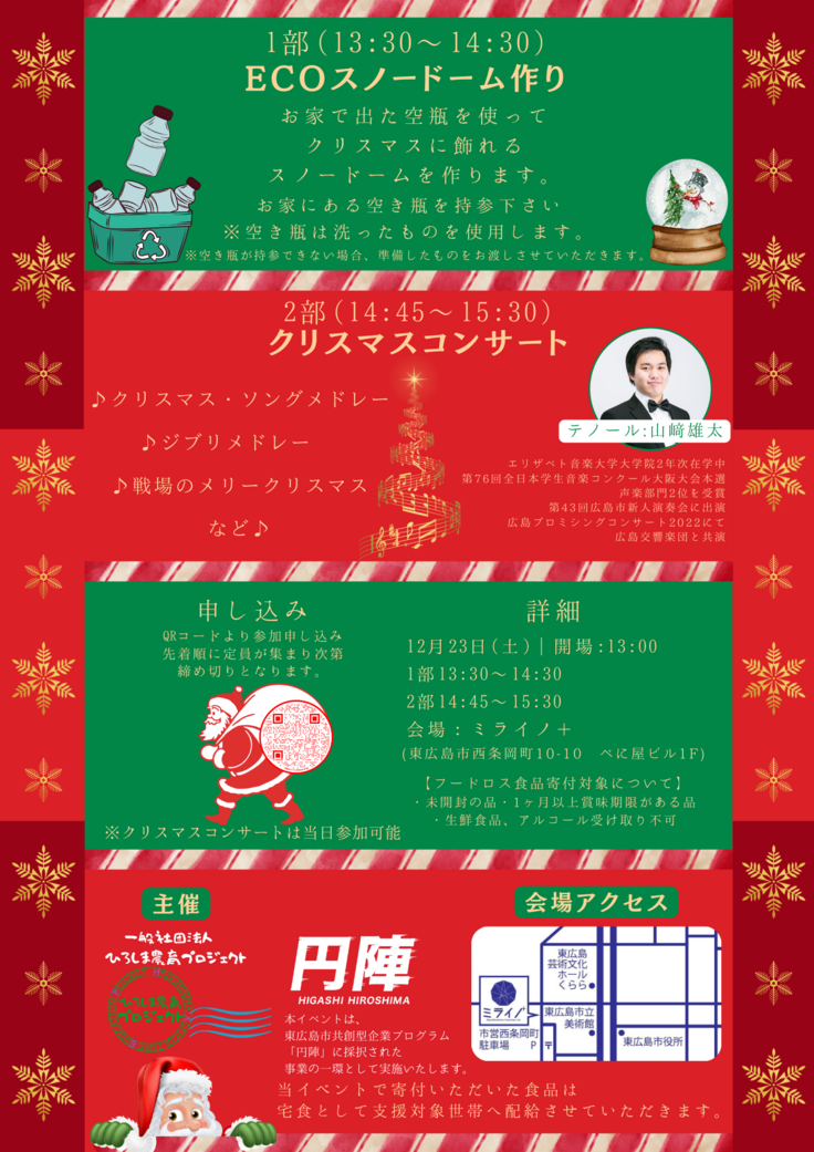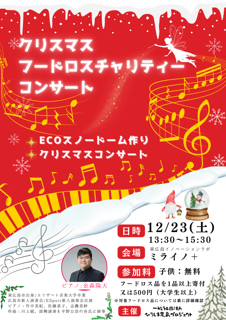 家族で参加できる。「クリスマスチャリティーコンサート」を開催します。