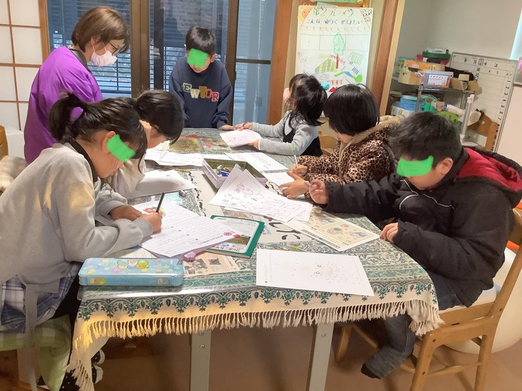令和6年3月時点の登録児童は28名です。平日の利用児童は平均12名程度になります。平日は午後5時から無償の学習支援を実施し、それぞれ下学年・上学年2名ずつの支援者が付き、きめ細かい学習支援をしております。9月から2月末までの集計では延べ1,753名が利用しています。