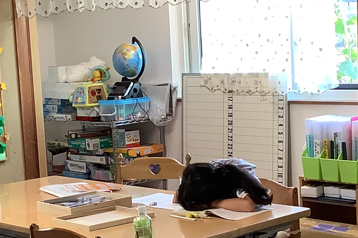 (↑勉強中に眠くなって寝てしまった。夜勤のお母さんは、お子さんがいつ寝たかわかりません。)