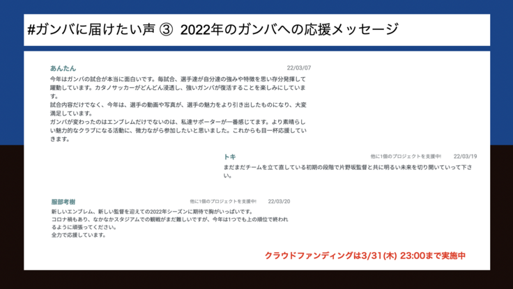 #ガンバに届けたい声 応援メッセージ③:2022ガンバに届ける声