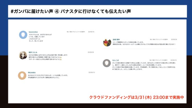 応援メッセージとしていただいた想いをご紹介させていただく、「 #ガンバに届けたい声 」。
