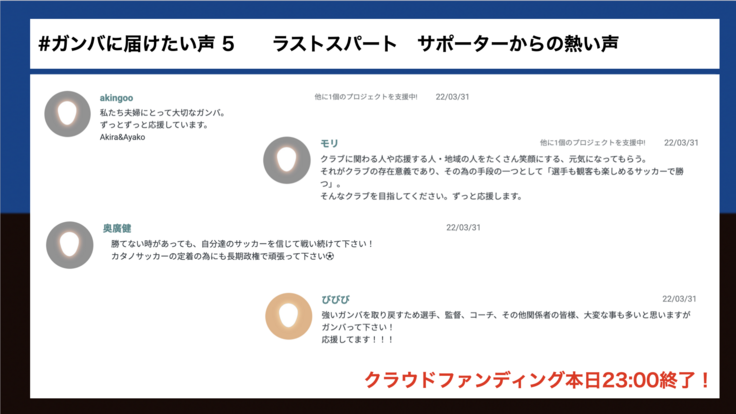 応援メッセージとしていただいた想いをご紹介させていただく、「 #ガンバに届けたい声 」。