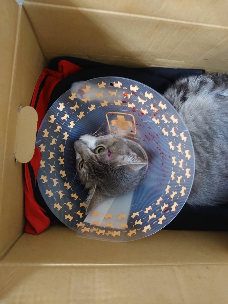 7月4日4:30頃 診察が終わり獣医師からは、顎が閉まらず口から血が出てるのと額の方に外傷が見られるため体よりも頭を強く打っており、後に脳圧が上がって命を落としてしまう可能性があると言われました。