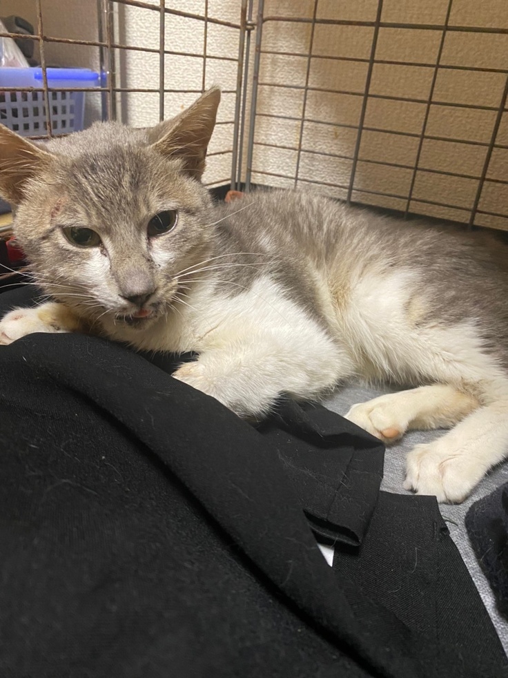 灰色と白の綺麗な毛色をしていたため、名前はグレイとしました。少し若めのオス猫です。