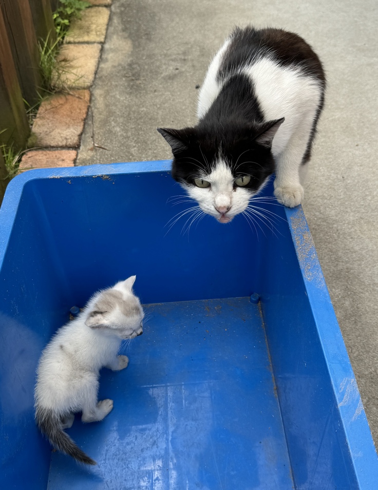 脳挫傷の処置をしてもらった後、帰宅し、玄関先にシンバが入った通院用のケージを一旦置き、先住猫2人を部屋に閉じ込め、「さてどうしよう…母猫は近くにいるはず。母猫を一緒に保護できなければ仔猫がこんな重体で長く生きれない…」とプレッシャーと向かい合わせで必死でした。