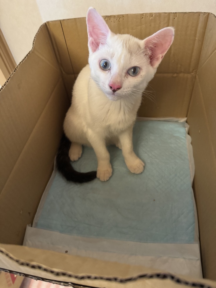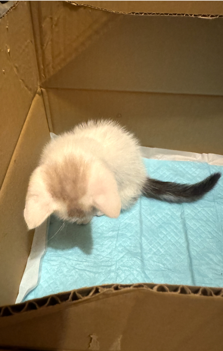 シンバを保護して間も無く、体重を計る為に使い始めた段ボール箱があります。