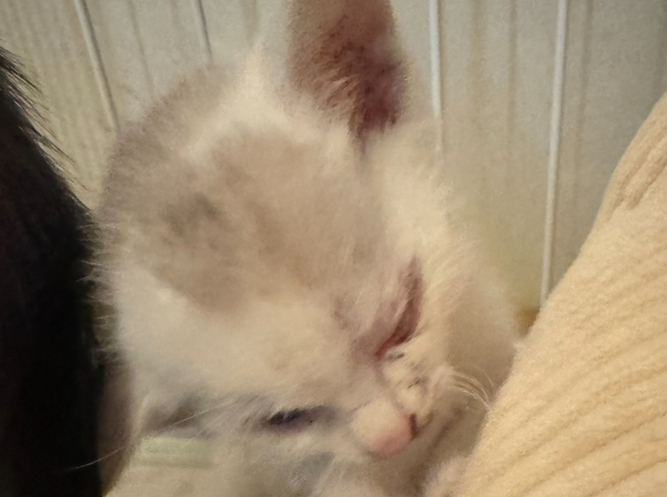 シンバを保護したとき、体重はわずか340gしかありませんでした。脳挫傷を負って動きが遅くなっていたシンバを最初に保護することができましたが、母猫のアテネは一緒に保護できず、母猫が必要な赤ちゃん猫を育てられるかどうか自信がありませんでした。さらにシンバは頭に大けがを負っており、いつ命を落としてもおかしくない状態でした。