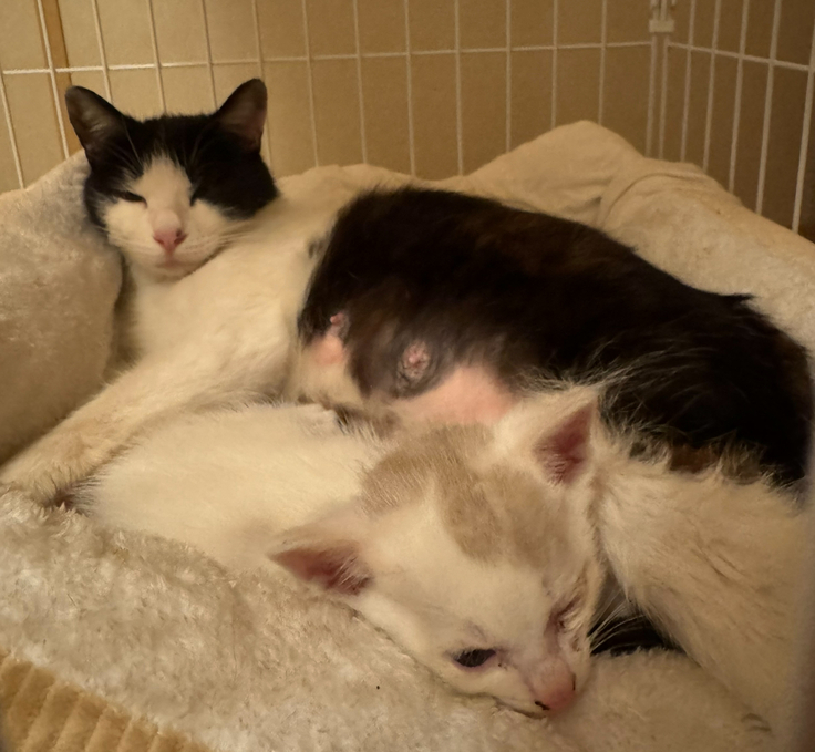無事に保護出来た後、シンバはてんかん発作を起こしましたが、それも乗り越えてきました。シンバもアテネも本当に強い子たちです。シンバは、今ではすっかり成長し、自分の好きなおもちゃで遊び、アテネと一緒に走り回り、元気に過ごしています!