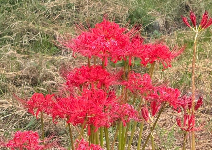 アテネとシンバが住んでいた空き家に続く小道の近くでも、彼岸花が咲いています。