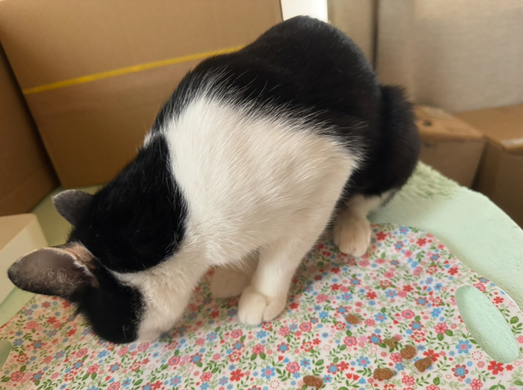 気休めかもしれませんが、シンバのご飯を無理に奪おうとしたり、シンバが食べている様子を羨ましそうにじっと見つめたりする姿は、以前より見かけなくなった気がします。ただ、本当に「満腹感」を感じてくれているのかどうかはまだ分かりません。