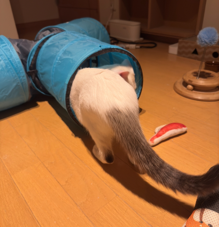 これまでは網戸越しでの体験でしたが、今日からは先住猫の姿が見えない状態で、繊細なアテネが「ここが私たちの家」と安心して過ごせるよう、様子を見守っていきます。